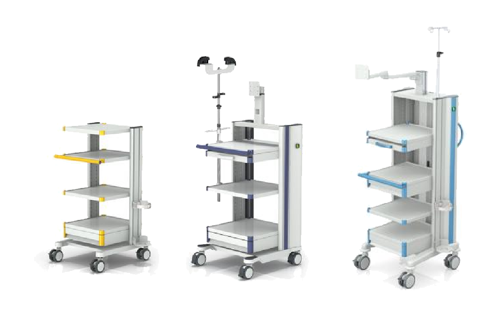 El Symbio-Cart es un carro único de tres columnas que cumple con todos los requisitos de los carros de equipos médicos modernos.