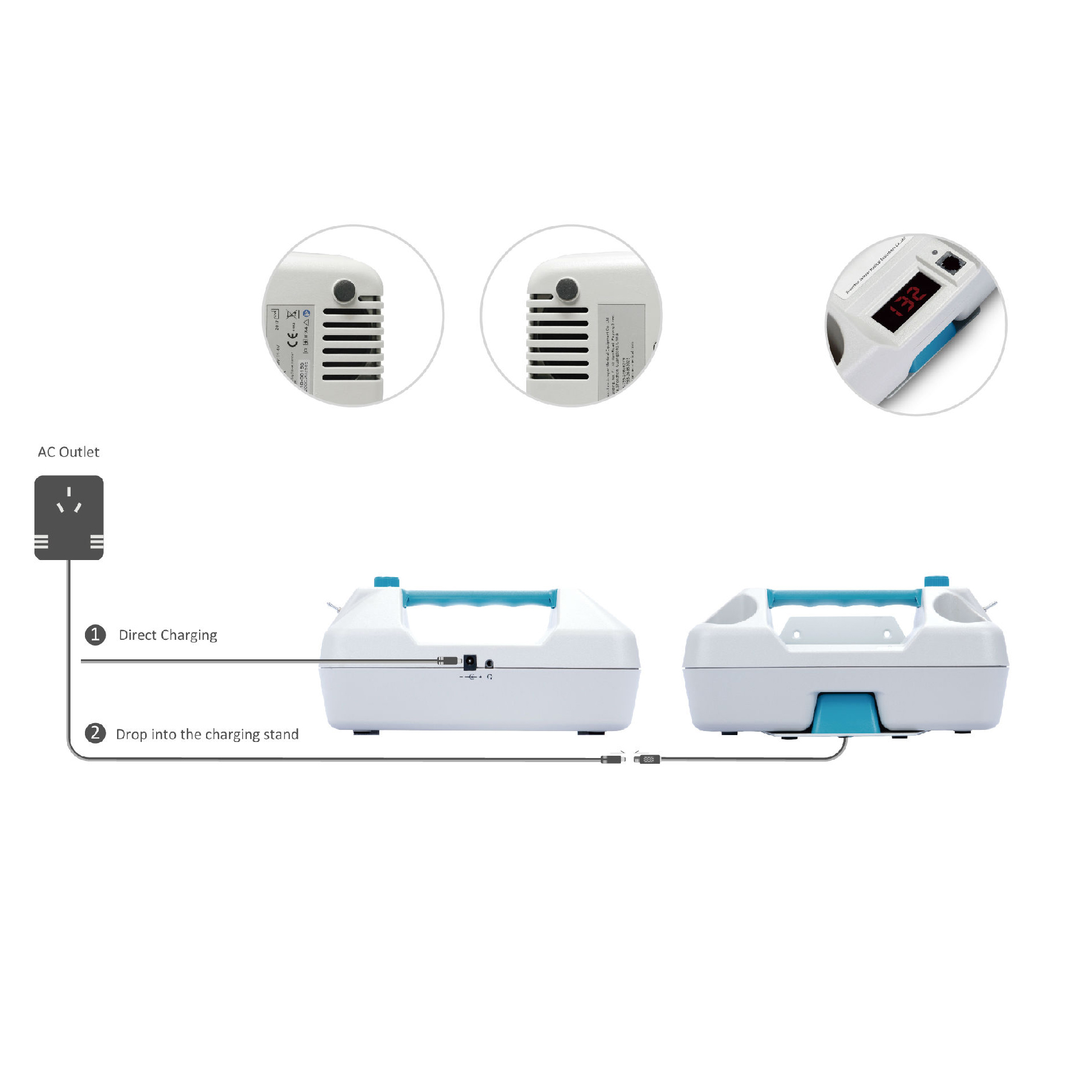 Detector fetal modelo de sobremesa con cargador y doble sonda.